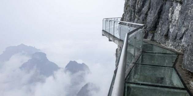 По названию несложно догадаться, что мост прозрачный. Людям, которые боятся высоты, лучше не смотреть под ноги. Серьёзно, вас предупредили.