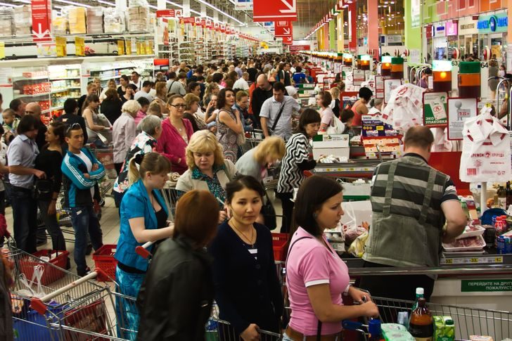 А очереди, дейсвительно, часто не соблюдают: редко у кассы скапливается (с 1,5 м дистанцией или без, до этого) — есть резервные кассы, как только кассир видит «критическую массу», вызывает коллегу. Часто передают приглашение по громкой связи о новом окне. Люди сами решают, кому удобнее перескочить из очередиили уж стоять. обычно «рулят» свои тележки из ближайшего «хвоста». Но! естьещё одно (и без «скопления народа», когда кто-то иедет с недельным продзапасом, а почти сразу подходит человек с 3.5 штуками — пропускают. Да, ни разу не видела немца «втискивающегося в промежуток в очереди», это невозможно.