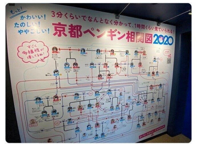 В аквариуме Киото вывешена схема любовных и семейных отношений местных пингвинов