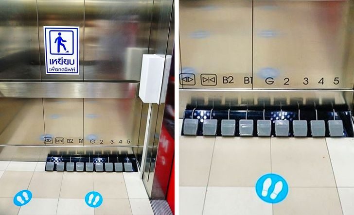 В торговых центрах Бангкока установлены лифты с педалями вместо кнопок