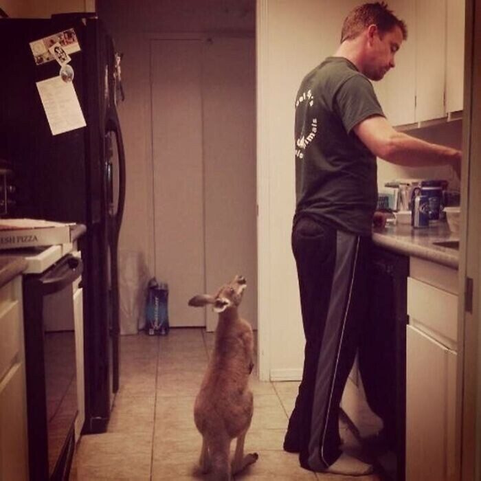 4. «Шестимесячный кенгуру, которого я выращиваю, очень нетерпелив во время кормления»