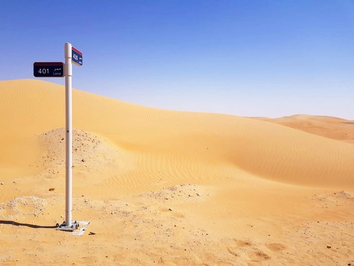Это установили прямо посреди пустыни, на пересечении двух песчаных аллей. Такой вот указатель улиц в пустыне