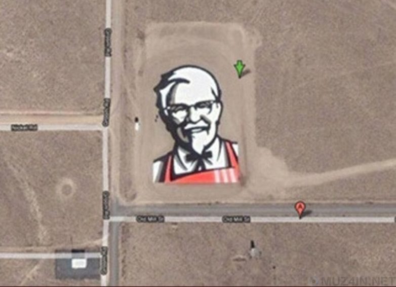 Это реальное фото, сделанное спутником. Компания KFC приготовила «сюрприз» для всех желающих исследовать Зону 51 на карте.