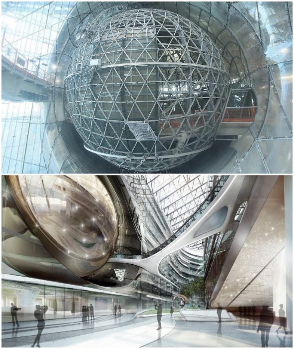 Кстати сказать, второе место по версии Emporis, занял проект Leeza Soho, созданный всемирно известным архбюро Zaha Hadid Architects. Им стало офисное здание в Пекине, представляющее собой две 207 м башни, соединенные в нескольких точках и завернутые в одну «глазурованную оболочку».