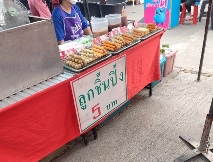 Разные закуски за 5 бат: сосиски, мясные шарики и другое