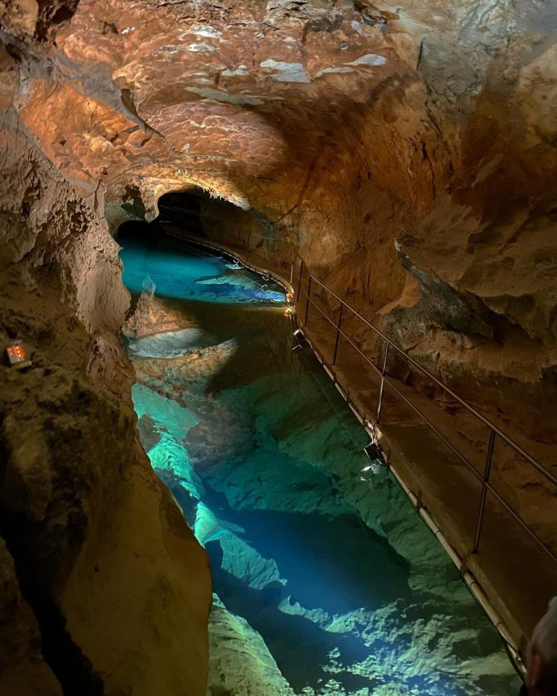Расщелины, выдолбленные веками эрозии, заполнены бирюзовой водой, завораживающим цветом, созданным природным явлением, которое возникает, когда свет отражается от известняковых отложений под водой в скальной породе.