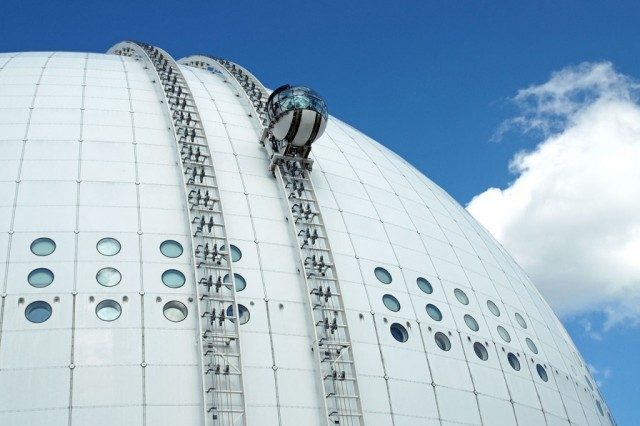 Крупнейшее в мире на настоящий момент полусферическое здание диаметром 110 метров и высотой 85 метров располагается в Стокгольме. Это величественное строение используется для проведения концертов, шоу и хоккейных игр. По внешней стороне полусферы вы можете покататься на стеклянных подъемниках «Скай-вью». 20-минутное путешествие по пути, огибающему верхнюю часть огромного купола, предоставляет возможность увидеть прекраснейшие панорамы столицы Швеции.