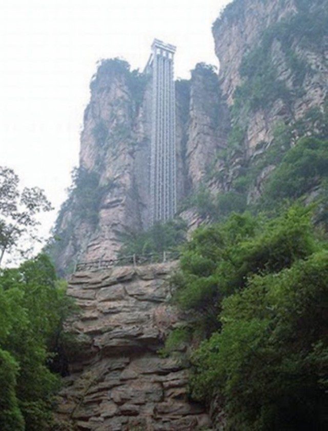Стеклянный лифт, установленный на боку огромной скалы в районе Юлинъюань, носит имя, которое в переводе с китайского означает «Лифт Ста Драконов». Это внушительное устройство открыто для публики с 2002 года и поднимает всех желающих на высоту 330 м, являясь самым высоким открытым лифтом в мире.