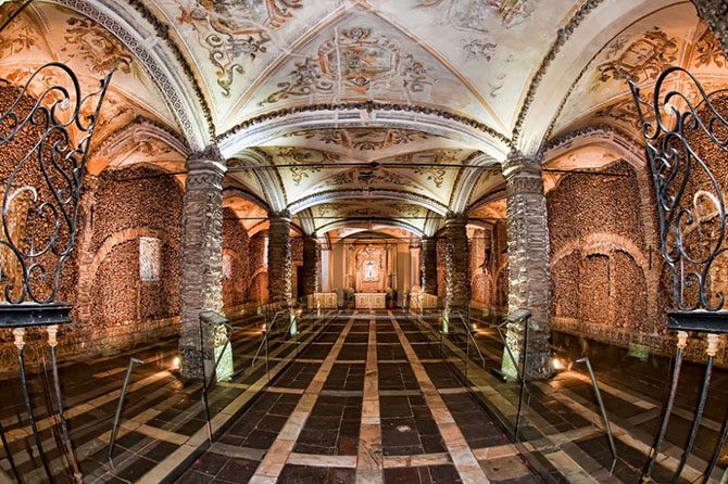 Капелла была построена в XVI веке монахом-францисканцем. Сама часовня небольшая — всего 18,6 метра в длину и 11 метров в ширину, но здесь хранятся кости и черепа пяти тысяч монахов. На крыше часовни написана фраза «Melior est die mortis die nativitatis» («Лучше день смерти, чем день рождения»).