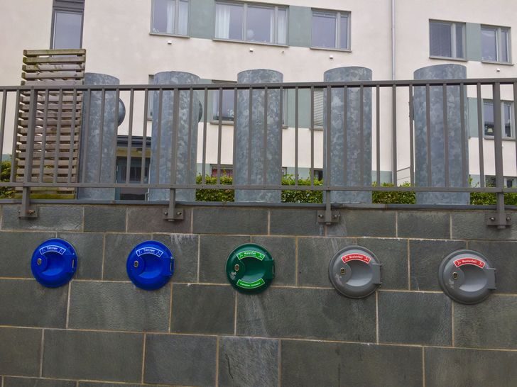 Одна из ключевых деталей экологичного дизайна в Швеции — подземные вакуумные трубы для раздельной утилизации мусора