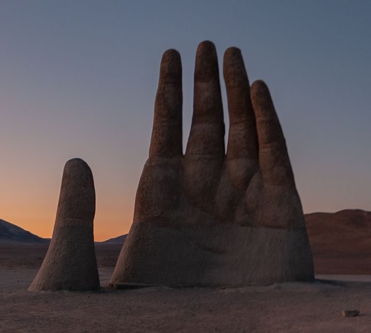 В пустыне Атакама из-под земли торчит гигантская ладонь