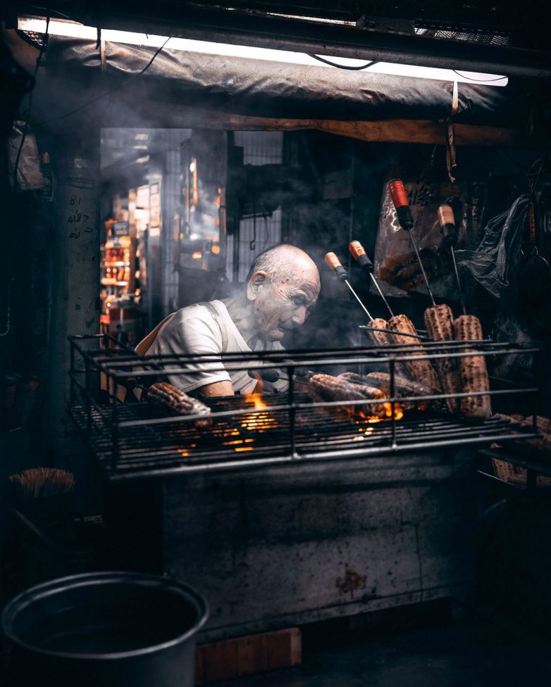 «Я с раннего детства замечал этого человека, молча жарившего кукурузу в переулке, но за последние десять лет не видел, чтобы он продавал её. Каждый раз, проходя мимо, я всегда ощущал вокруг него неповторимую атмосферу. Однажды, возвращаясь домой с работы, я впервые увидел, как он продаёт кукурузу на ночном рынке. Многие люди стояли в очереди, чтобы купить её. Казалось, что каждый здесь его друг и каждый знает его. Сегодня все надеются проявить себя через интернет, но это пожилой джентльмен совсем другой: просто продолжает делать свои любимые вещи, становясь при этом особенным человеком на ночном рынке Ши-Да», — рассказывает Келвин об интересных людях своего города.