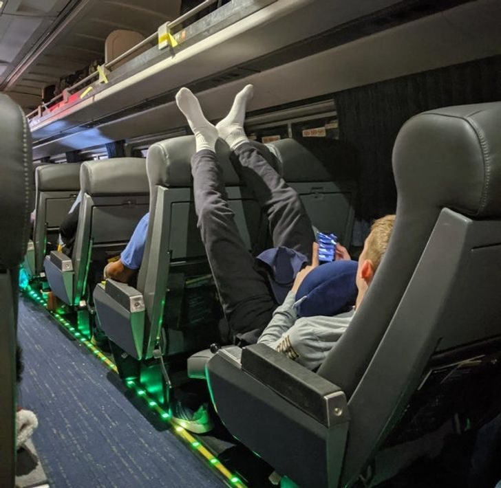 Этот парень решил устроиться поудобнее, но о других не подумал