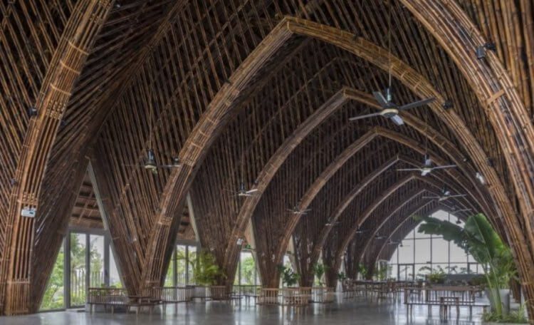 Также в этом году был достроен дом общины Casamia, который полностью сделан из бамбука. Он расположен на территории вьетнамского города Хойан, состоит из 22 арок и возвышается на целых 9 метров. В конструкцию входят общественный и спортивный центры, а также другие помещения. По словам представителей дизайнерской фирмы VTN Architects, сооружение спроектировано таким образом, чтобы выдержать даже самые суровые окружающие условия. Также внутри очень хорошая звукоизоляция — это одно из преимуществ использования бамбука.