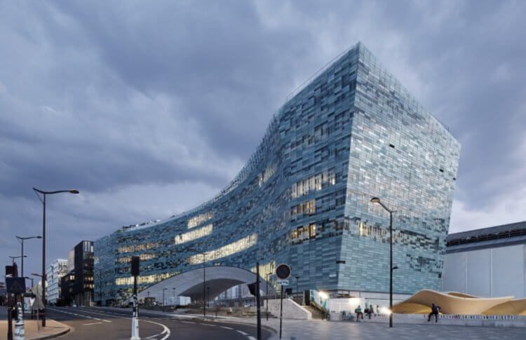 Фактически, это сооружение было построено в самом конце 2020 года, но авторы New Atlas все равно решили включить его в свой список. Здание является главным офисом французской газеты Le Monde, которая издается уже более полувека. Автором проекта стало архитектурное бюро Snøhetta, которое решило создать фасад из 20 000 кусочков стекла. Они складываются в 772 различных узора — идея заключается в том, что внешний вид здания меняется в зависимости от погоды. Помимо внешней красоты, это сооружение выделяется тем, что вмещает в себя до 1600 сотрудников.