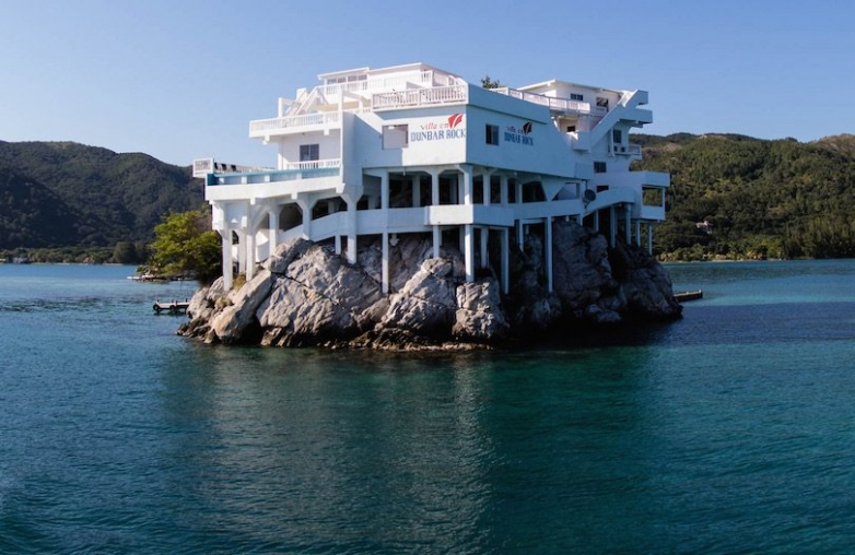 Из-за сложного рельефа скалы здание возводилось более 3-х лет. Хозяин острова протянул по дну океана коммуникации к дому, оборудовал причал, удобный спуск к воде. На втором уровне он сделал открытый бассейн и открыл отель. Частную гостиницу окружает живописный дубовый лес, в береговой зоне установлены беседки.