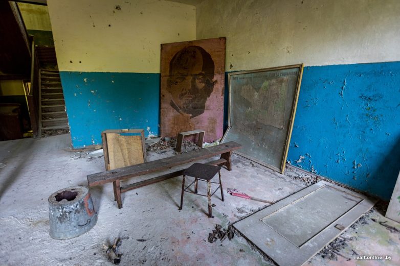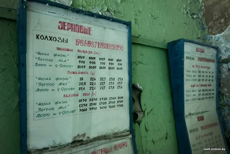 Еще одно двухэтажное здание, судя по всему, служило администрацией совхоза. Здесь мы обнаружили план землеустройства, путевки на вывоз продукции, памятки комбайнера, какую-то полуистлевшую документацию. И опять плакаты, лозунги, портреты Ленина. «Достойно встретим XXVII съезд КПСС!»