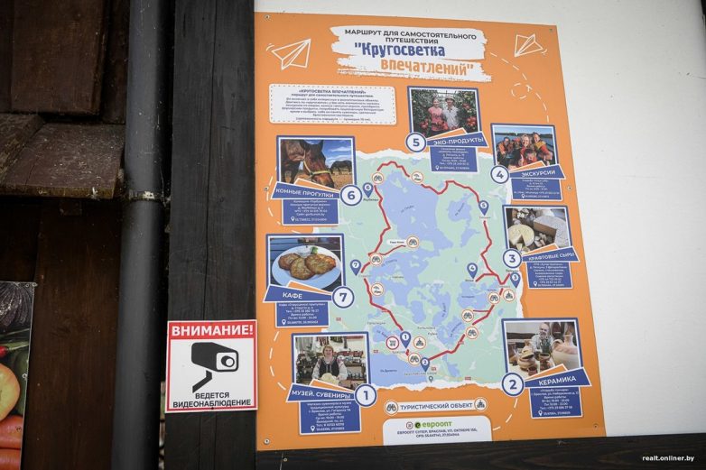 Дичь, настойки, варенье из голубики и прочую снедь продают в эколавке на базе отдыха «Дривяты». Цены на рыбу такие: угорь крупный (свежемороженый) — 80 рублей за 1 кг, лещ — 4,95, линь — 8,16, окунь — 6,89.