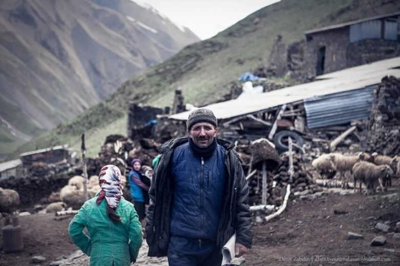 Дорога извивается в ущелье уходя все выше и выше. В горах в это время все еще очень холодно, несмотря, что на дворе стоит середина мая. Кое-где еще лежит снег. Наконец-то мы видим дома, в беспорядке разбросанные по долине. По официальным данным аула нет, он не существует, земли здесь числятся как сельхозугодья. В начале аула мы встречаем Джарула, аварца среднего возраста, который с традиционным им гостеприимством вежливо приглашает нас в гости.