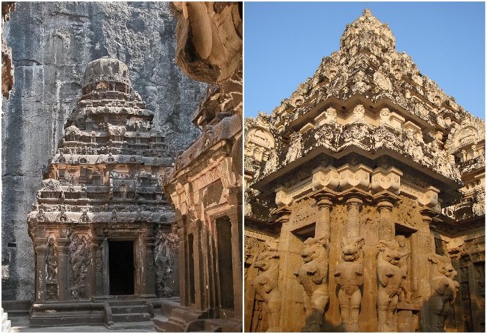 Уникальность Храма Кайласанатха состоит в том, что его вырубили из монолитной скалы сверху вниз (Эллора, Индия).