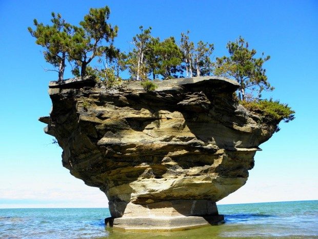 Скажите честно, глядя на эту фотографию: вы верите, что перед вами настоящий остров? Вот и я не сразу поверила. Тем не менее это не фотошоп и никакая другая программа, а настоящие фотографии настоящего островка на озере Гурон, недалеко от городка Порт Остин в штате Мичиган. Называется сие чудо природы Turnip Rock, что в переводе означает Скала Репа.