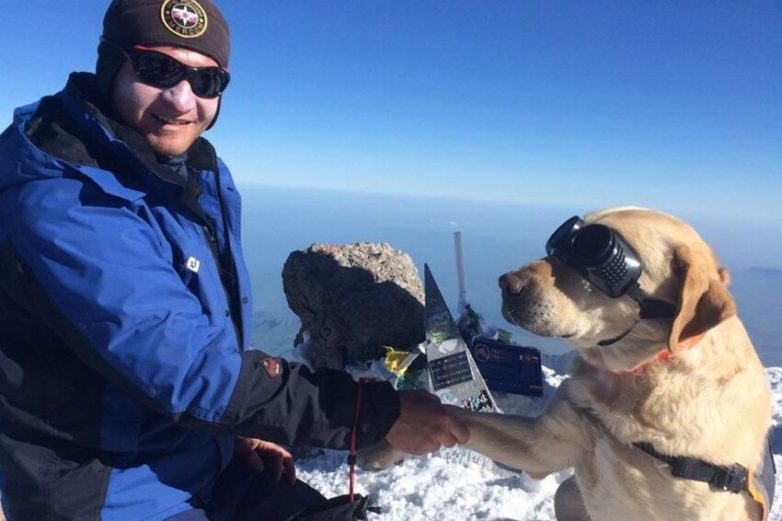 Вместе со своими хозяевами, спасателями МЧС, высочайшую вершину Европы Эльбрус впервые покорили лабрадоры Оскар и Буран.