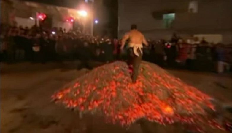 Хождение по горящим углям – традиция, практикуемая в Китае.