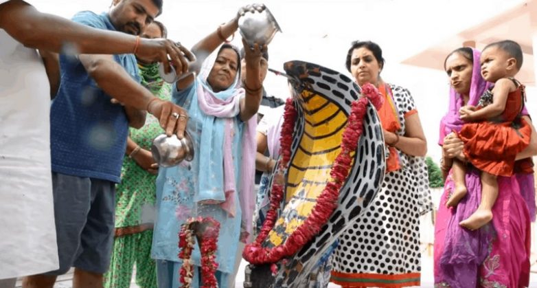 В этот день люди по всей Индии поклоняются змеям: они читают молитвы, приносят цветы, молоко и сладости.