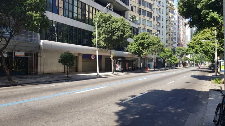 «Оживленнейшая улица, главная в районе Копакабана, рабочий день, 10:30. Все закрыто, хлеба купить негде, работает только „Макдоналдс“ и аптека. Все сидят по домам и смотрят игру (с Коста-Рикой)».