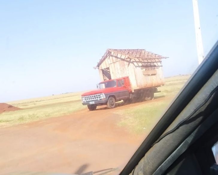 Здесь можно встретить грузовик, который перевозит деревянный дом целиком