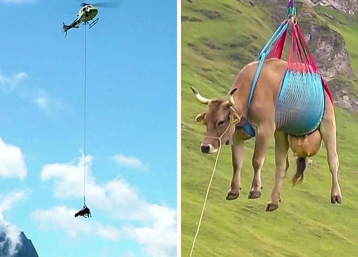 5. Кстати, иногда коров доставляют на высокогорные пастбища на вертолетах