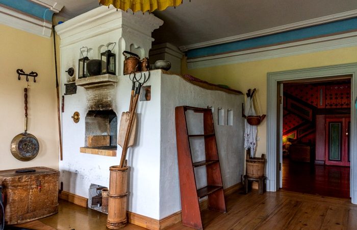 Реставрационные работы были начаты в 2011 году, причем подошли к вопросу восстановления основательно: авторы идеи и волонтеры не просто искали старые предметы и составляли из них интерьер, но и максимально сохранили оригинальные элементы конструкции здания. Так, например, восстанавливались до пригодного состояния даже бревна, которые не одряхлели окончательно. А вот обои печатались по новой, однако рисунок на них является точной копией узоров на сохранившихся обрывках.