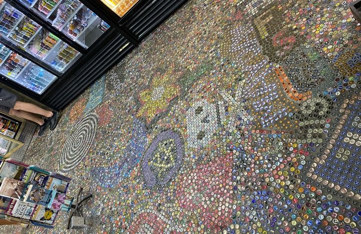 Пол этого круглосуточного магазина сделан из бутылочных крышек