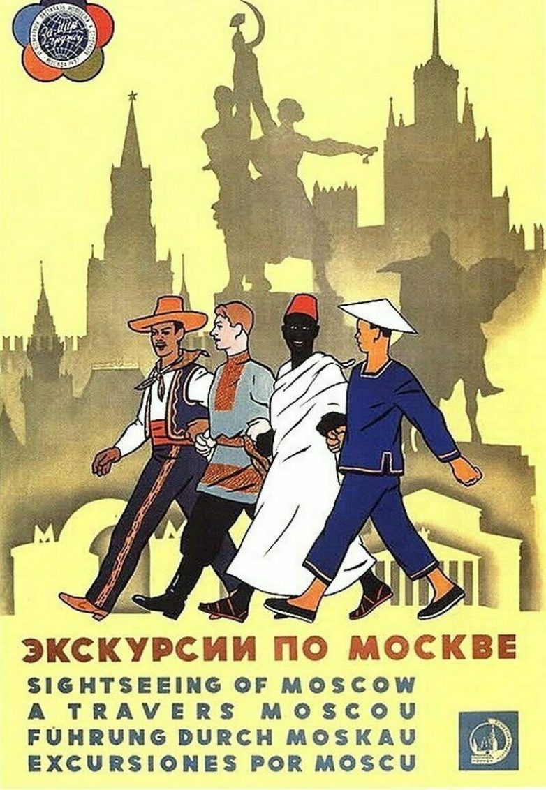 Может показаться, что железный занавес не позволял иностранцам приезжать в СССР, однако только до начала войны в стране побывали тысячи гостей. Ну, а в период оттепели количество туристов стало гораздо больше: жителей других стран активно приглашали увидеть молодое прогрессивное государство, где строился коммунизм.