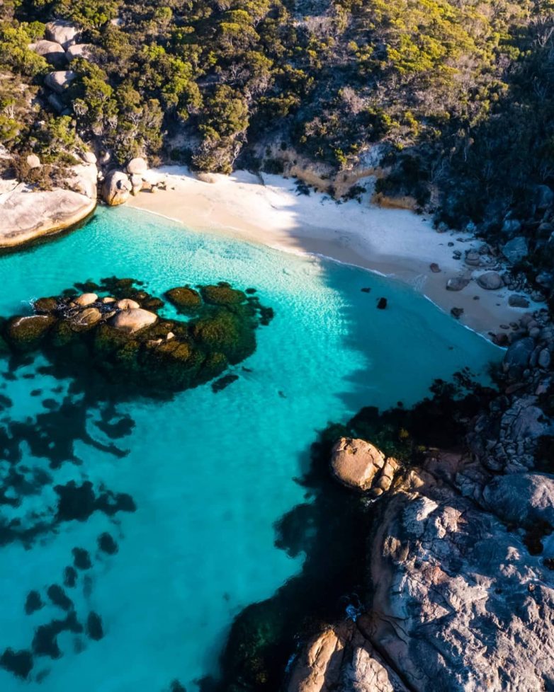 Расположенный в стороне от проторенных дорог в Дании, в 442 километрах к югу от Перта, Западная Австралия, пляж Уотерфолл (Waterfall Beach) — это тихий оазис, где нетронутый белый песок встречается со сверкающей бирюзовой водой.