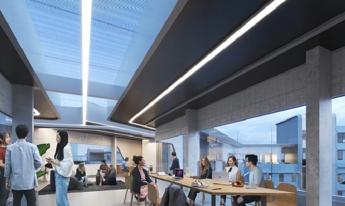 Естественно, только спальными и бытовыми комнатами не обошлось. Здесь предусмотрено общественное пространство с множеством социальных функций, таких как комнаты отдыха, тренажерный зал, различные лаборатории, которые будут доступны как для жильцов, так и для сотрудников университета.