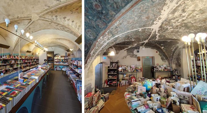 На потолке этого книжного магазина в Брашове есть оригинальные фрески
