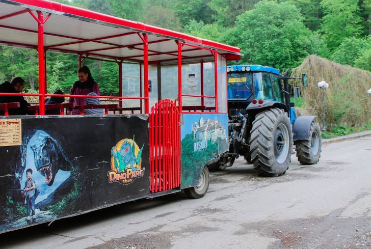 «От подножия крепости в Рышнове ходит такой „паровозик“, садиться в него мы, конечно же, не стали и пошли пешком»