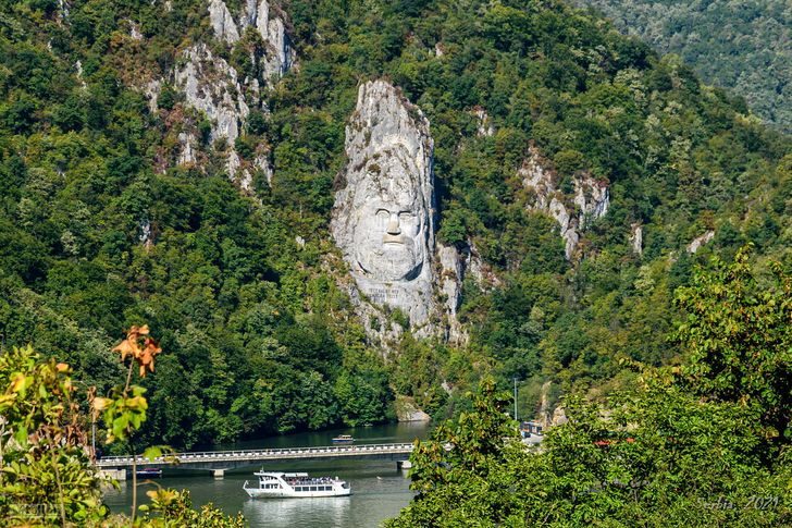 На берегу в скале высечен гигантский лик древнего румынского царя