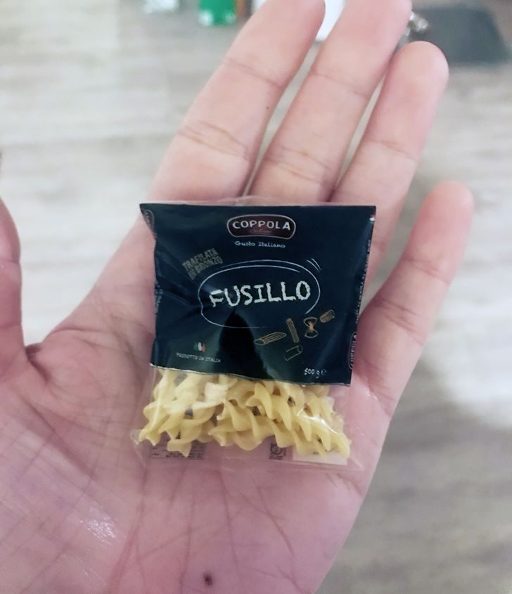 24. «Этот крошечный пакетик с макаронами я купил в Италии»