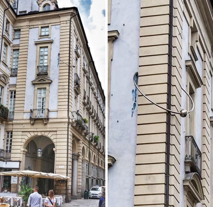 Это инсталляция современного искусства. Она создана архитектором Коррадо Леви в 1996 году на историческом здании.