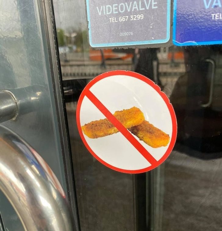 Странный выбор знака, запрещающего есть в здании вокзала в Таллине