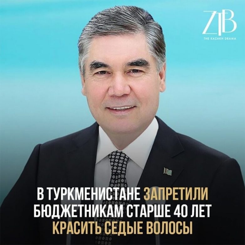 Мужчинам запретили красить поседевшие волосы в черный цвет. Теперь местным чиновникам необходимо показывать седину, а если ее нет, то даже «подкрашивать» шевелюры белым. Ранее, когда Бердымухамедов сам красил седые волосы в черный цвет, от чиновников и бюджетников требовали, чтобы они скрывали седину.