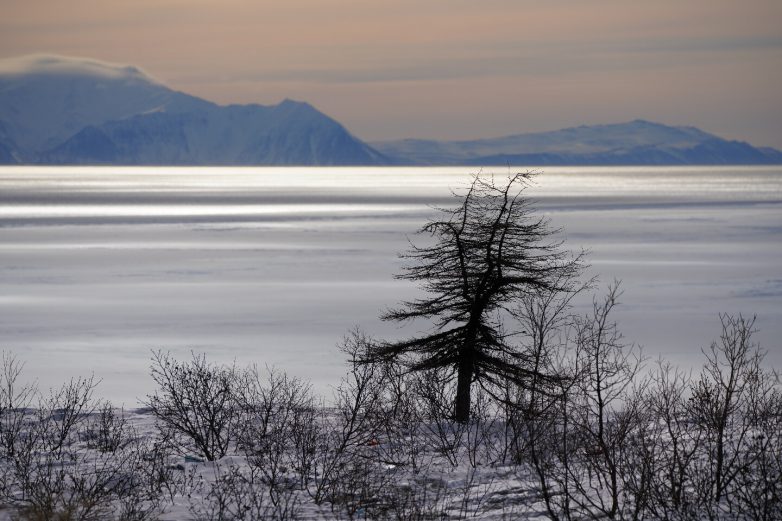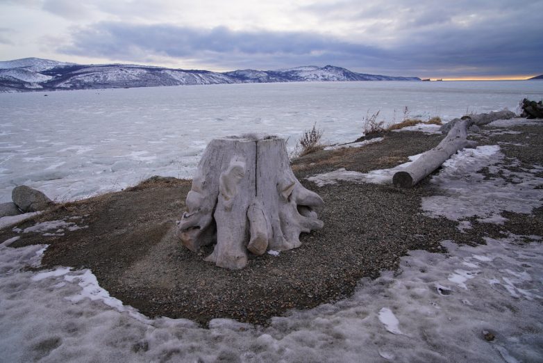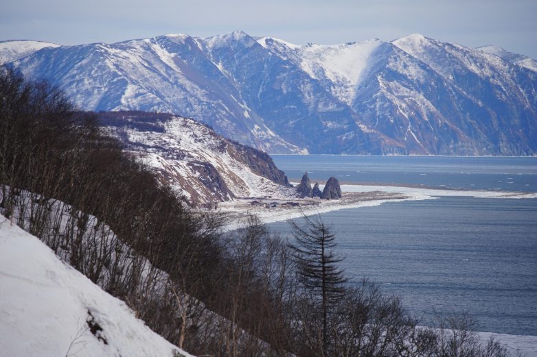 Охотское море отказывается замерзать, протестует и вздыбливается прозрачными торосами вдоль берега. Льдина находит на льдину и застывает в пылу борьбы, не завершив начатое. Морские берега ощетинились просоленными пальцами выброшенных на гальку коряг. Изящные черные силуэты лиственниц превращают зимние сопки в подобия гравюр. Окружающая действительность в целом графична. Разве что ярко-голубое небо не вписывается в черно-белую картину.