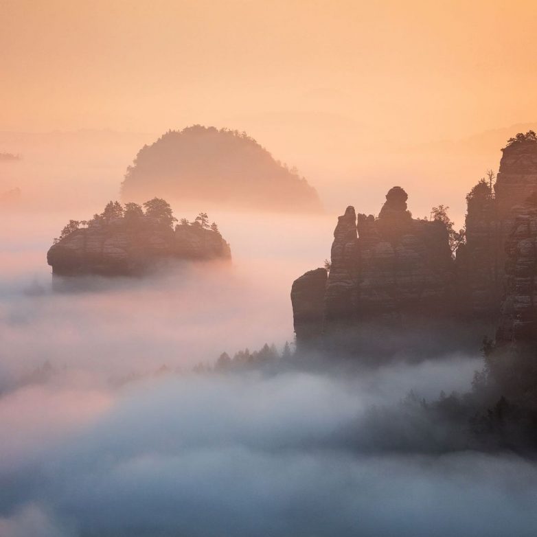 «Это невероятное чувство — стоять на скале в утренней тишине, над бесконечным морем облаков, и видеть, как первый луч солнца касается земли. Именно эту атмосферу я стремлюсь поймать своей фотокамерой и поделиться затем ею с вами», — рассказывает фотограф.