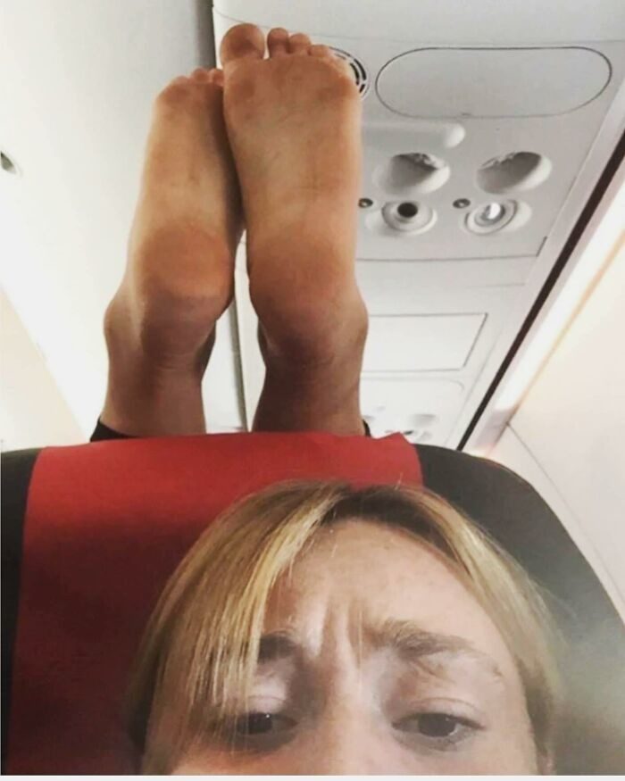 Пассажир сушит потные носки