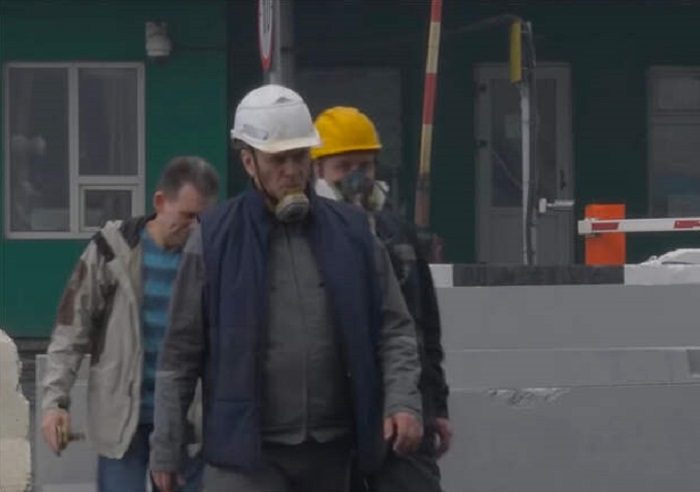 Даже за пределами проходной люди стараются использовать пусть минимальные, но средства, позволяющие защитить дыхательные пути. Сами рабочие утверждают, что в некоторые дни просто невозможно становится дышать, а смог ощущается на физическом уровне.