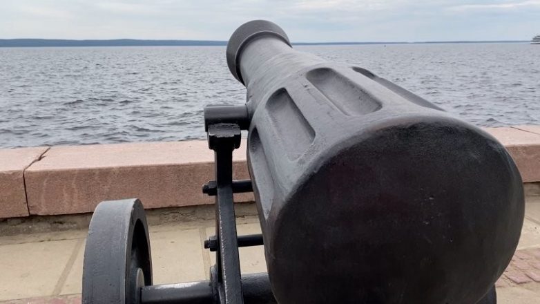 Немного дальше по набережной стоят пушки направленные в воды озера.