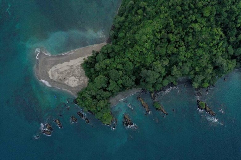 Пляж острова и лес с высоты
