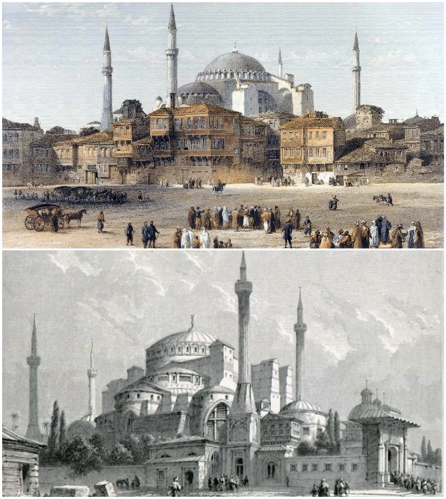 Во все времена собор Святой Софии привлекал внимание неординарными архитектурными формами и масштабом (Стамбул, Турция)